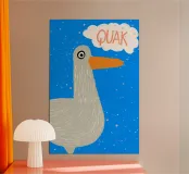 Quack! Divertente illustrazione di anatra in grigio e blu - poster umoristico per le stanze dei bambini, per gli appartamenti condivisi o come idea regalo.
