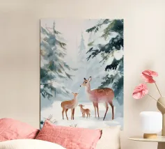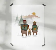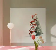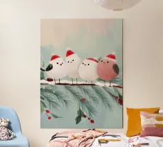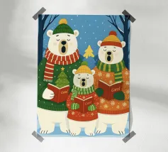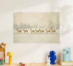 Questa festosa opera d'arte natalizia raffigura quattro giocose oche che indossano cappelli e sciarpe a maglia colorate e che danzano gioiosamente insieme in una foresta innevata di pini. Dipinto a mano in morbido acquerello, cattura lo spirito allegro degli animali del bosco in inverno. Perfetto per tessuti, carte da parati e accoglienti progetti stagionali, questo affascinante disegno aggiunge calore vintage e stravaganza alle tradizioni natalizie. Create da Uta Naumann, le oche portano la magia e l'allegria nostalgica delle feste, rendendole una scelta deliziosa per le celebrazioni festive, l'artigianato invernale e le decorazioni ispirate al bosco.