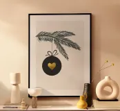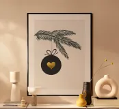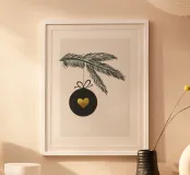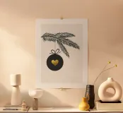 Ramo di abete con gingillo e cuore carta hahnemühle