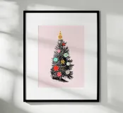 Questo albero di Natale festoso unisce il fascino vintage a un gioco di colori. Gli ornamenti luminosi in rosso, menta e oro donano un'allegria da negozio di caramelle al pino scuro disegnato a mano: un mix di tradizione e fantasia che sembra allo stesso tempo nostalgico e moderno. Perfetto per aggiungere un gioioso spirito retrò alle festività, cattura il calore di decorare insieme e lo scintillio di un'accogliente serata invernale. Da showmemars