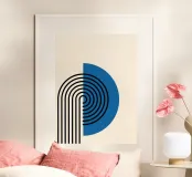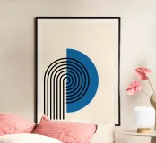 poster geometrico, design retrò, arte murale moderna, stampa d'arte astratta, design minimalista, arte murale blu, poster line art, metà secolo moderno, forme geometriche, geometria astratta, decorazione murale per interni.