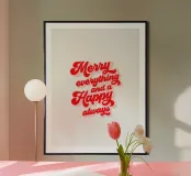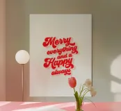 Celebrate la stagione delle feste con un tocco di allegria! La scritta "Merry Everything and Happy Always" risplende in un font retrò dal carattere audace, con un'ombra rosa chiaro su sfondo bianco. Questo design eccentrico e minimale porta positività e dà il tono per abbracciare il nuovo anno con gioia e infinite possibilità. Perfetto per diffondere l'allegria delle feste con un'atmosfera giocosa e retrò su una grande varietà di prodotti, che saranno anche dei deliziosi regali di Natale.