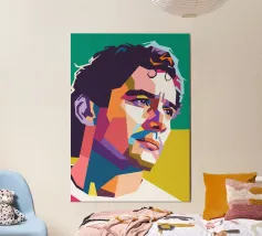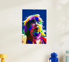 Ritchie Blackmore nello stile WPAP è rappresentato attraverso forme geometriche e colori vibranti e contrastanti che catturano la sua intensa personalità e la sua iconica presenza come chitarrista leggendario. Lo stile enfatizza gli angoli acuti e le aree di colore piatte, trasformando i tratti del viso, i capelli lunghi e l'espressione tipica del chitarrista in un'immagine pop-art di grande impatto che riflette sia la sua eredità rock che la sua energia artistica.