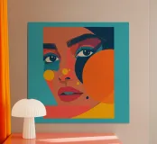 Ritratto astratto di donna con forme geometriche e colore piatto carta hahnemühle