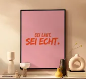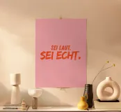 Coraggio per l'autenticità! "Siate forti. Sii reale". in arancione su sfondo rosa vi ricorda di essere voi stessi e di non scendere a compromessi.