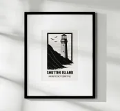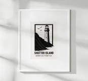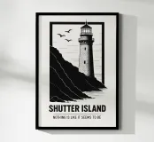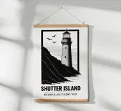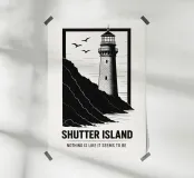 Stampa Shutter Island, Poster cinematografico alternativo, Bianco e nero, Minimalista, Faro, Reparto psichiatrico, Ospedale psichiatrico, Regalo per i fan del cinema
