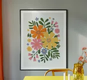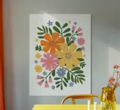 Un'illustrazione pulita e allegra di un semplice bouquet di fiori di campo colorati su un semplice sfondo bianco. L'opera d'arte è una pura e gioiosa celebrazione della bellezza semplice e senza fronzoli della natura.