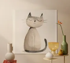 Questa opera d'arte utilizza una deliberata semplificazione per trasformare la forma in carattere. La geometria arrotondata, l'anatomia ridotta e il tratto sobrio enfatizzano il volume e l'immobilità piuttosto che il realismo. Il peso della figura è espresso attraverso l'equilibrio e la simmetria, mentre gli occhi chiusi introducono un senso di calma interiore e di presenza autonoma. Lo sfondo saturo amplifica la silhouette del soggetto, permettendo a umorismo, calore e astrazione di coesistere senza eccessi narrativi. L'opera esplora come un linguaggio visivo minimale possa trasmettere personalità, massa e tono emotivo attraverso la sola forma.