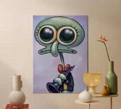 Uno Squidward stanco e annoiato che guarda fuori da una finestra, appoggiato al telaio con un'espressione spenta.