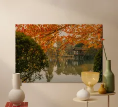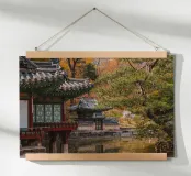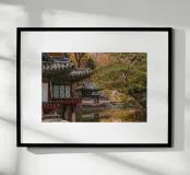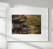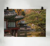 Stagno del giardino segreto di Huwon a Seul, Corea del Sud carta hahnemühle