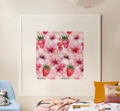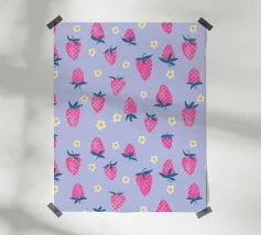 Un delizioso disegno acquerellato che combina succose fragole rosa con morbidi fiori di ibisco rosa su uno sfondo rosa chiaro. Questo dolce disegno tropicale fonde frutta fresca e fiori esotici per un'estetica femminile ed estiva. . Perfetto per gli amanti delle fragole, per gli appassionati di tropici, per i fan dell'estetica rosa e per tutti coloro che amano l'affascinante combinazione di dolci bacche e splendidi fiori tropicali dai toni morbidi e romantici.