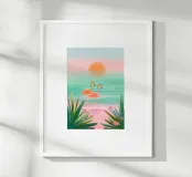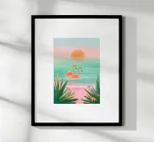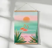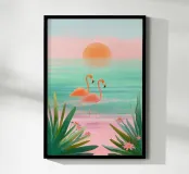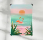 Sunset Bloom – Flamingos in a Blush Lagoon carta hahnemühle
