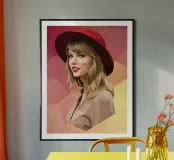 Taylor Swift con cappello rosso Low poly carta hahnemühle