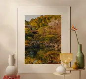 Tempio giapponese al tramonto a Kyoto, Giappone carta hahnemühle