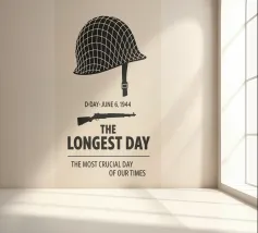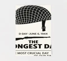 Stampa Il giorno più lungo, Poster cinematografico alternativo, Arte murale minimale, Bianco e nero, Stampe di qualità, WW2, D-Day 6 giugno, Elmetto, Regalo per i fan del cinema