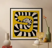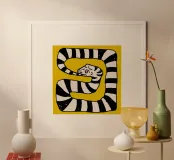 Il serpente che mangia la coda mette a fuoco il leggendario ouroboros con vibranti toni gialli, che simboleggiano rinnovamento ed energia. Questa illustrazione ispirata ai miti cattura l'eterno ciclo della vita, fondendo l'antico simbolismo con l'audace arte contemporanea. Una delle quattro varianti che si combinano perfettamente in un set di grande effetto.