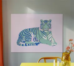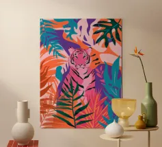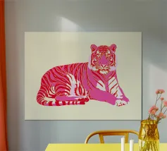 Tigre sotto una palma con combinazione di colori rosa carta hahnemühle