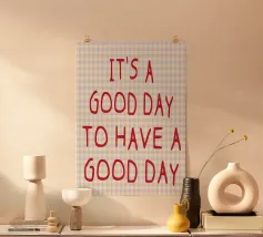 Today Is Going to Be a Good Day - parole semplici e calde per iniziare bene la mattinata. I toni morbidi e lo stile minimalista portano un tranquillo ottimismo e una calma energia, perfetti per le camere da letto, gli spazi di lavoro o gli angoli accoglienti che accolgono un dolce incoraggiamento.