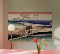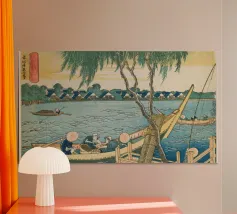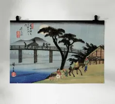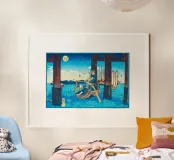Japanese Ukiyo-e and Shin-Hanga prints, from serene landscapes by Kawase Hasui to the iconic waves of Hokusai and Hiroshige. Ukiyo-e, literally “pictures of the floating world,” is a Japanese art form that captures the beauty, elegance, and transience of everyday life. Originating in the Edo period, these woodblock prints and paintings depict landscapes, city scenes, theater, and the grace of women, blending realism with stylized design. Characterized by bold lines, harmonious color palettes, and meticulous attention to detail, Ukiyo-e celebrates the ephemeral moments of life—the shimmer of rain on a street, the curve of a mountain, the fleeting expression of a courtesan. Later, the Shin-Hanga movement revived this tradition with a modern sensibility, emphasizing light, mood, and atmosphere.