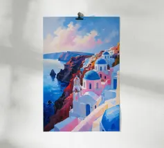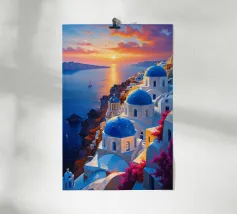 Twilight Glow Over Santorini's Clifftop Architecture carta hahnemühle
