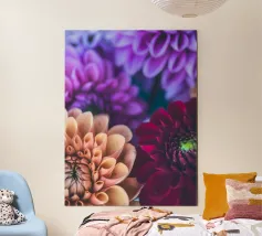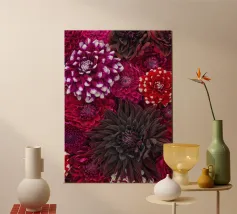 Celebrate il fascino vibrante delle dalie miste, uno straordinario spettacolo di colori, forme e texture che cattura la brillantezza artistica della natura. Dai tenui colori pastello alle tonalità vivaci e ricche, questa fotografia mette in mostra la bellezza unica di ogni varietà di dalia, creando una composizione ipnotica e dinamica. Perfetta per dare vita ed eleganza a qualsiasi spazio. Le dalie simboleggiano forza, creatività ed eleganza.