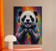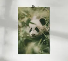 Un simpatico panda si gode la pioggia in piedi in una pozzanghera carta hahnemühle