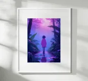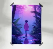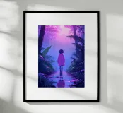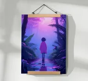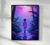 Una ragazza in piedi in una giungla in una notte di pioggia Lofi Art carta hahnemühle