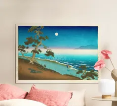 Japanese Ukiyo-e and Shin-Hanga prints, from serene landscapes by Kawase Hasui to the iconic waves of Hokusai and Hiroshige. Ukiyo-e, literally “pictures of the floating world,” is a Japanese art form that captures the beauty, elegance, and transience of everyday life. Originating in the Edo period, these woodblock prints and paintings depict landscapes, city scenes, theater, and the grace of women, blending realism with stylized design. Characterized by bold lines, harmonious color palettes, and meticulous attention to detail, Ukiyo-e celebrates the ephemeral moments of life—the shimmer of rain on a street, the curve of a mountain, the fleeting expression of a courtesan. Later, the Shin-Hanga movement revived this tradition with a modern sensibility, emphasizing light, mood, and atmosphere.