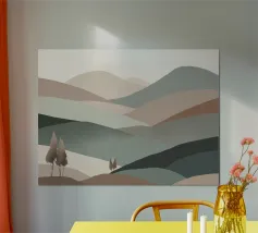 Uno studio minimalista di colline ondulate e vallate costeggiate da vigneti, reso in calde ocre, prugne profonde e tenui tonalità della terra. Ispirate ai paesaggi delle campagne vinicole, le forme pulite e i morbidi gradienti evocano la calma solare dei campi fertili e delle vendemmie, distillando l'essenza della viticoltura rurale in una forma pura e astratta.