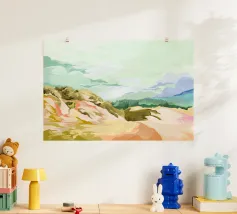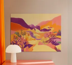 Uno studio minimalista di colline ondulate e vallate costeggiate da vigneti, reso in calde ocre, prugne profonde e tenui tonalità della terra. Ispirate ai paesaggi delle campagne vinicole, le forme pulite e i morbidi gradienti evocano la calma solare dei campi fertili e delle vendemmie, distillando l'essenza della viticoltura rurale in una forma pura e astratta.