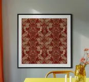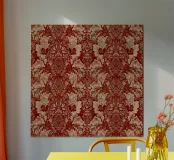 Un elegante motivo damascato vintage caratterizzato da ornati motivi floreali rossi e crema in stile vittoriano con intricati dettagli barocchi. Questo lussuoso disegno cattura l'opulenza della carta da parati damascata tradizionale con il suo ricco sfondo rosso e gli elaborati motivi ornamentali beige. Perfetto per gli amanti dell'eleganza vintage, per i fan dell'estetica vittoriana, per gli appassionati di barocco e per tutti coloro che apprezzano la raffinatezza senza tempo dei motivi damascati classici e la grandezza storica.