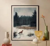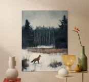 Questo motivo d'atmosfera mostra una volpe in piedi, attenta, in una foresta invernale coperta di neve. Sullo sfondo di betulle spoglie e abeti scuri si sviluppa un'atmosfera calma e quasi mistica. Il contrasto tra la pelliccia bruno-rossastra dell'animale e il bianco del paesaggio innevato crea un'immagine affascinante che unisce naturalezza e magia invernale. Ideale per murales, poster, tazze, copertine di cellulari, cuscini, tende da doccia e magliette - un'attrazione per gli amanti degli animali e della natura.