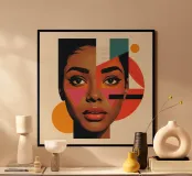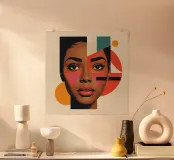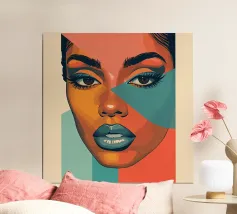 Volto di donna con forme geometriche e colori retrò carta hahnemühle