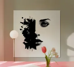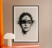 Volto di donna con linee astratte e sovrapposizione di errori carta hahnemühle