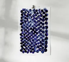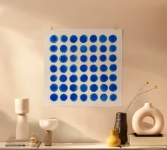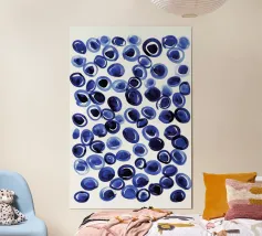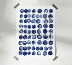 Questa opera d'arte acquerellata blu con motivo Waterdrop è un pezzo di grande impatto visivo. L'opera d'arte presenta un motivo ripetuto di gocce d'acqua rese in acquerello. Questa opera d'arte è perfetta per chi apprezza l'arte dell'acquerello e i motivi a goccia.