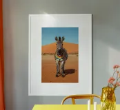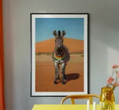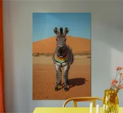 Zebra a strisce arcobaleno in un paesaggio desertico carta hahnemühle