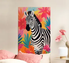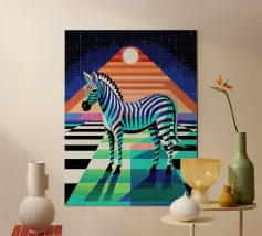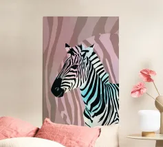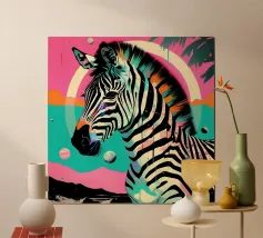 Godetevi una vivace illustrazione della fauna selvatica con una zebra che corre nella savana con le nuvole sullo sfondo.