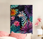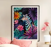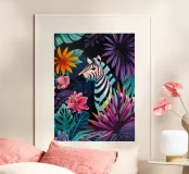 Zebra in un ambiente floreale tropicale carta hahnemühle