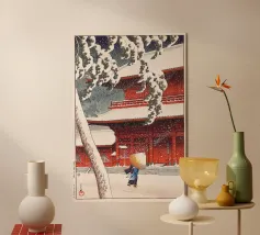"Il tempio Zojoji a Shiba" cattura magnificamente la grandezza storica di uno dei templi più iconici di Tokyo, incorniciato da un ambiente sereno e da un'architettura tradizionale. La composizione mette in risalto i dettagli intricati e l'atmosfera tranquilla del tempio, evocando un senso di calma e riverenza. Perfetta per gli amanti dell'arte giapponese, dei monumenti storici e delle decorazioni murali tranquille, quest'opera d'arte conferisce un'eleganza senza tempo e una ricchezza culturale a soggiorni, uffici o spazi creativi.