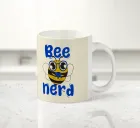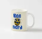 We present a bee wearing glasses and holding a video game controller, accompanied by the playful phrase "Bee Nerd." This design is a clever pun that combines the words "Bee" and "Be," perfect for expressing a love for gaming with a touch of humor. An ideal gift for gaming fans and anyone who proudly embraces nerd culture!