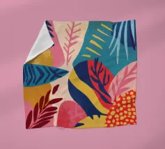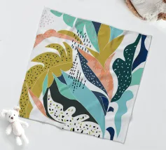 Una giocosa composizione astratta, ricca di audaci forme ispirate alla giungla e di pennellate vivaci. Questo disegno a mano combina verde acqua, blush, senape e menta in un layout gioioso e contemporaneo, perfetto per ravvivare gli interni moderni con un tocco tropicale.
