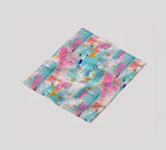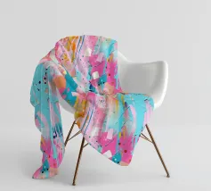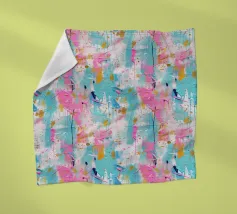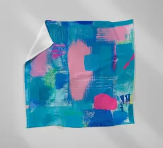 Le vibranti tonalità di rosa, blu e turchese si fondono in un vivace disegno astratto, creando un senso di movimento ed energia. I tratti audaci e i colori stratificati evocano un'atmosfera dinamica ed espressiva.