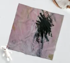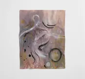 Linee fluide e danzanti emergono su uno sfondo rosa vellutato, dove le sfumature di malva, ocra e bianco si fondono in un'atmosfera eterea e vibrante. Tratti neri e circolari interrompono la morbida tavolozza cromatica, portando ritmo e contrasto, come impulsi di energia che attraversano lo spazio pittorico. Il dipinto parla di un sottile equilibrio tra gesto e silenzio, tra visibile e invisibile. È un'eco del movimento universale, dove la pittura diventa un linguaggio di energia e spirito.