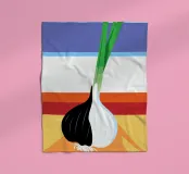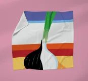 Illustrazione con aglio in bianco e nero. Design minimalista e colori vivaci.