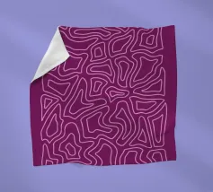 Motivo artistico astratto con sfondo lavanda e linee bianche stravaganti e labirintiche che ricordano un codice segreto. Questo disegno unico e creativo è perfetto per essere utilizzato in vari progetti grafici, tra cui sfondi di siti web, copertine di libri o disegni tessili, e piacerà a chiunque sia alla ricerca di motivi intricati e stimolanti.