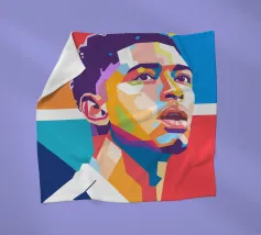 Il WPAP (Wedha's Pop Art Portrait) di Anthony Davis è una rappresentazione sorprendente che cattura l'essenza della star dell'NBA attraverso una lente vibrante e geometrica. Questo stile artistico utilizza forme audaci e intersecanti e una tavolozza di colori vivaci per raffigurare i tratti distintivi di Davis, come la fronte prominente e lo sguardo intenso, che simboleggiano la sua presenza dinamica sul campo da basket.