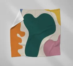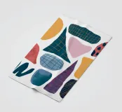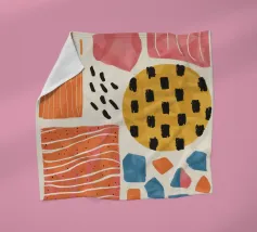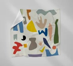 Una composizione astratta di forme assemblate con varie texture e motivi, tra cui griglie e punti. La sofisticata palette di colori e la disposizione equilibrata le conferiscono un'atmosfera da metà secolo moderno.