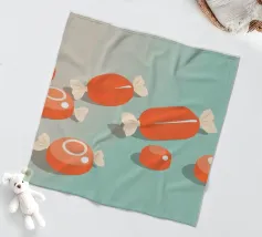 Un vivace mix di caramelle è distribuito su una superficie rosa, che mostra varie forme e colori, tra cui lecca-lecca roteanti e dolciumi rotondi. Questa disposizione giocosa invita a una gioiosa indulgenza.