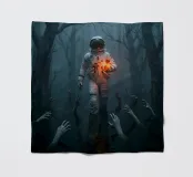 Questa opera d'arte oscura e cinematografica fonde fantascienza e orrore in una potente scena surreale. Un astronauta attraversa una foresta nebbiosa e infestata, circondato da mani inquietanti che emergono dall'acqua sottostante. Nella sua mano, un cuore incandescente proietta una luce calda contro la fredda atmosfera blu, simboleggiando la speranza, l'umanità e la sopravvivenza nell'ignoto. L'illuminazione tetra, gli alberi nebbiosi e il contrasto drammatico creano una storia visiva intensa ed emozionante. Perfetto per gli appassionati di dark fantasy, space art, temi psicologici e decorazioni murali d'atmosfera, questo disegno aggiunge mistero e profondità.