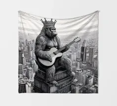Illustrazione comica di una parodia classica della storia di King Kong. Lo scimmione costruisce l'Empire State Building con i lego, ma non sa cosa fare con Barbie.